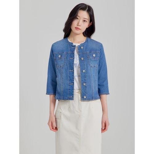 [지센]여성 스탠카라 데님자켓 LCJKP322_BL