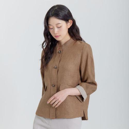 [지센](2컬러) 린넨 버튼업 밴드넥 자켓 LCJKP424