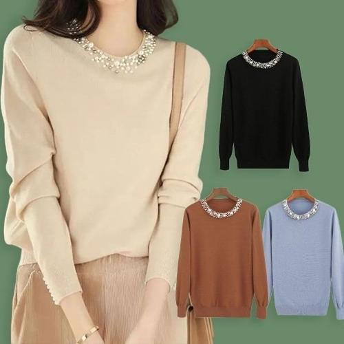 [엄지척]여성 진주 라운드 넥 긴팔 봄 가을 니트 티_19682048_667501