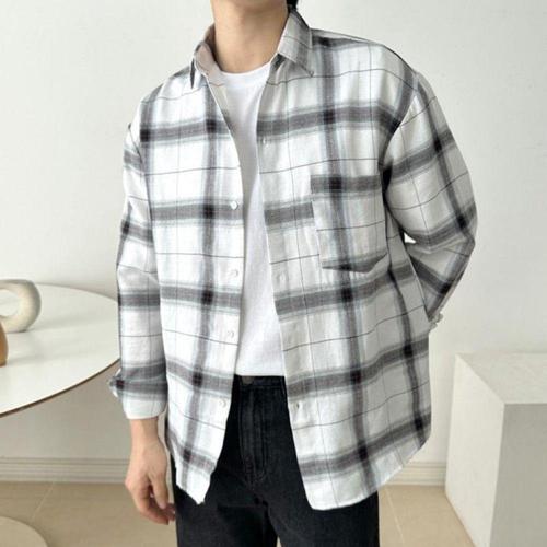 체크패턴 남성용 캐주얼 긴팔 셔츠 학생 직장인용 루즈핏 남방 WFLN0T4