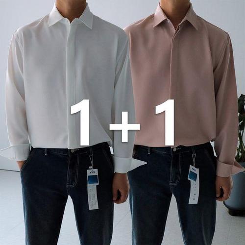 [맨즈북]2장세트 히든플라켓 남성 직장인 셔츠 남방 봄 하객옷