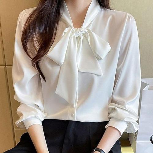 리본 쉬폰 긴팔 블라우스 어깨 셔링 직장인 오피스룩