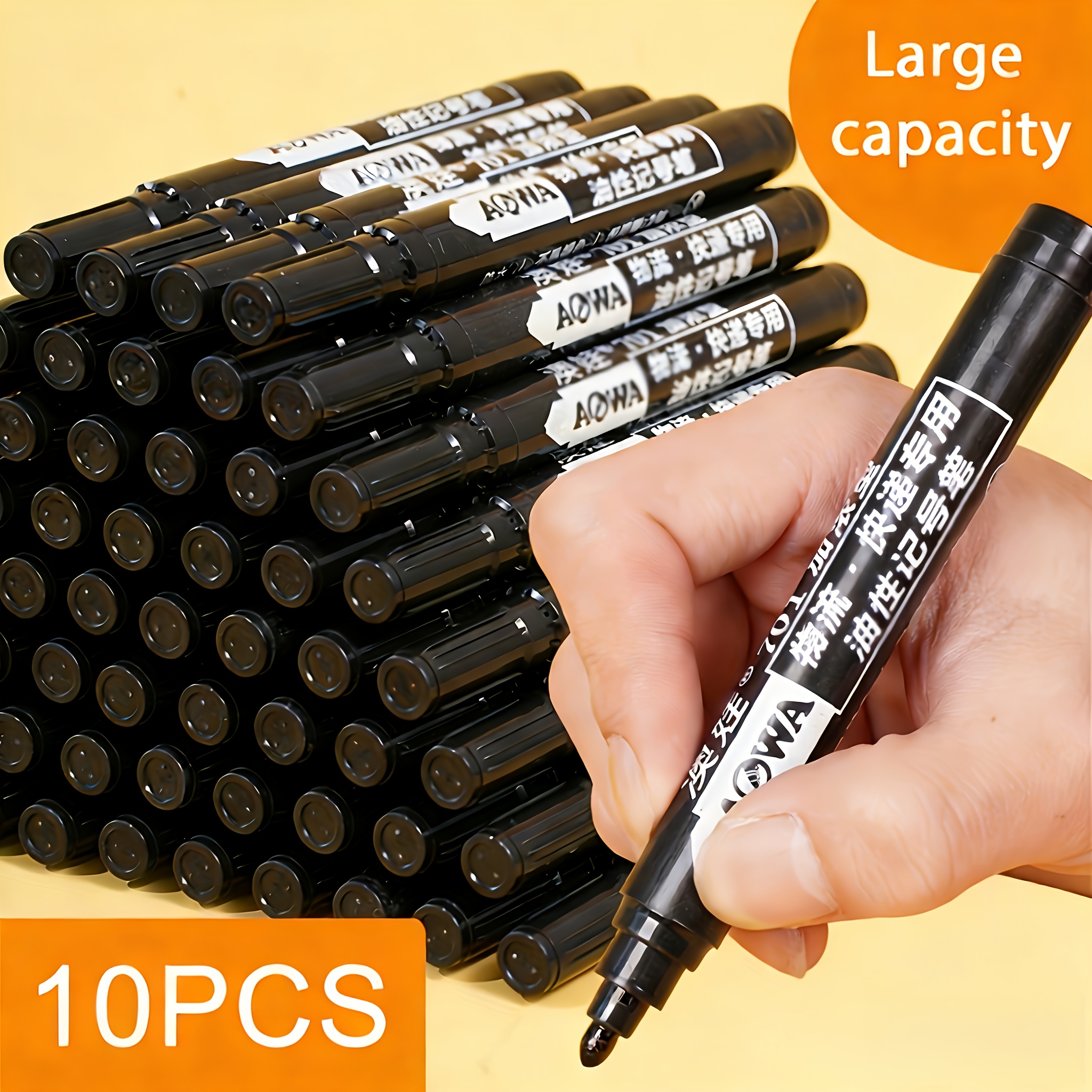 TEMU 50/10개입 블랙 마커 | 대용량 유성, 변색 방지, 두꺼운 팁, 2mm 가는 팁, 다용도 로지스틱, 종이, 스틸, 유리에 적합 - 개학 필수품, 학습 문구류, 필기구