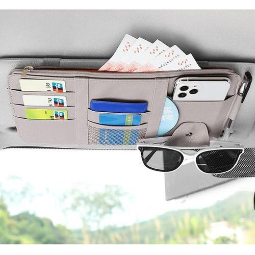 자동차 선 바이저 주최자 멀티 포켓 가죽 선글라스 홀더 보관 카드 홀더 카드 IC 안경 클립 차양 가방 자동차 보관