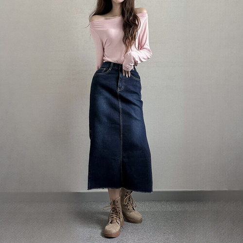 나야홍 / 빅사이즈 509 뒤밴드트임컷팅청스커트 DLOP084