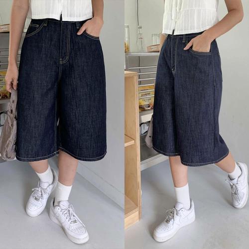 |KHP8DD6|여성 면100 스티치 뒷밴딩 청 반바지