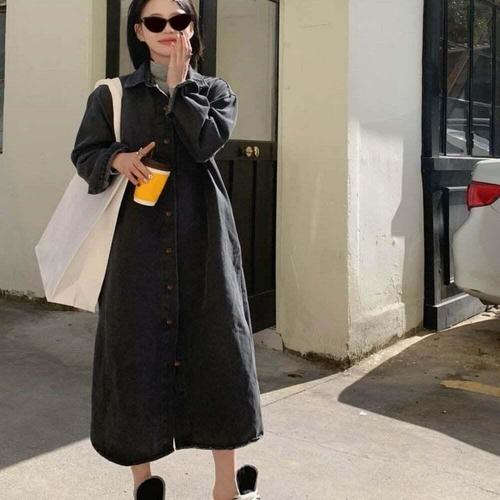 [셀러허브_여성트랜드패션]롱 셔츠원피스 청 카라 캐주얼 데님 원피스 남방