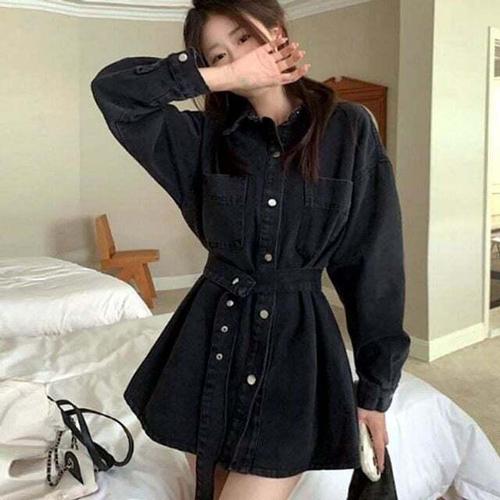 [셀럽하우스]카라 LJXV1147 청 롱 데님 간절기 원피스 셔츠