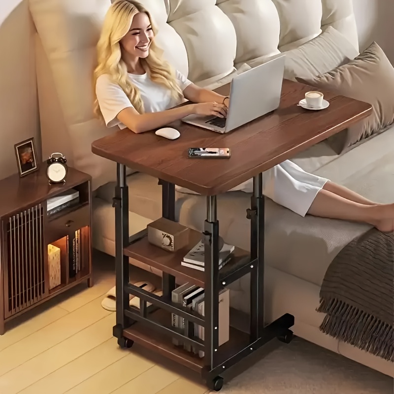 TEMU 2026년형 업그레이드 두꺼운 모바일 사이드 테이블 | 수납 랙이 있는 실용적인 침실 침대 옆 사무실 테이블, 월넛 엔드, 높이 조절 가능, 컴팩트한 모던 디자인