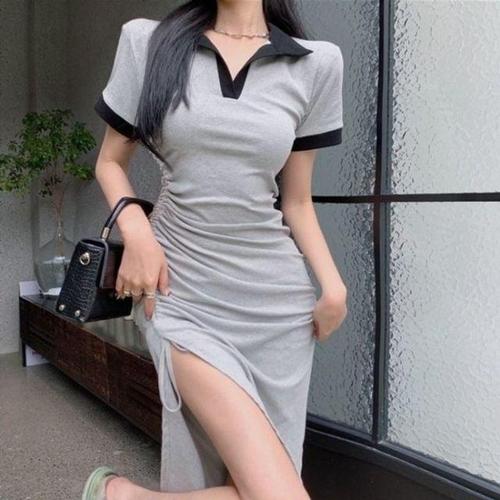 여성미니원피스 슬림핏원피스 여름 스트링원피스 여자반팔원피스 카라넥원피스