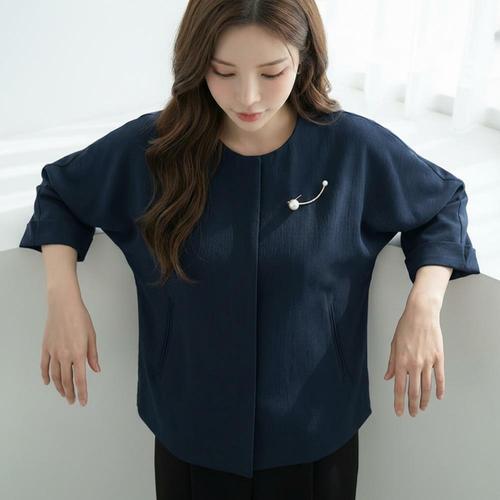 |KDJ6D6A|여성 숏 자켓 노카라 케이프 스타일 브로치 포인트 미니 코트