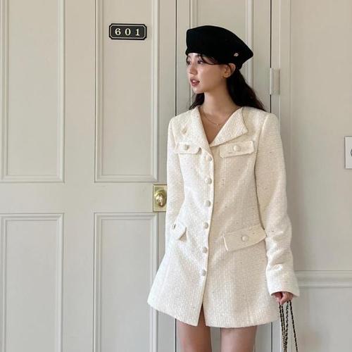 블라우스 단추 허훌다 트위드 롱원피스 셔츠 뷔 WFKOIMH