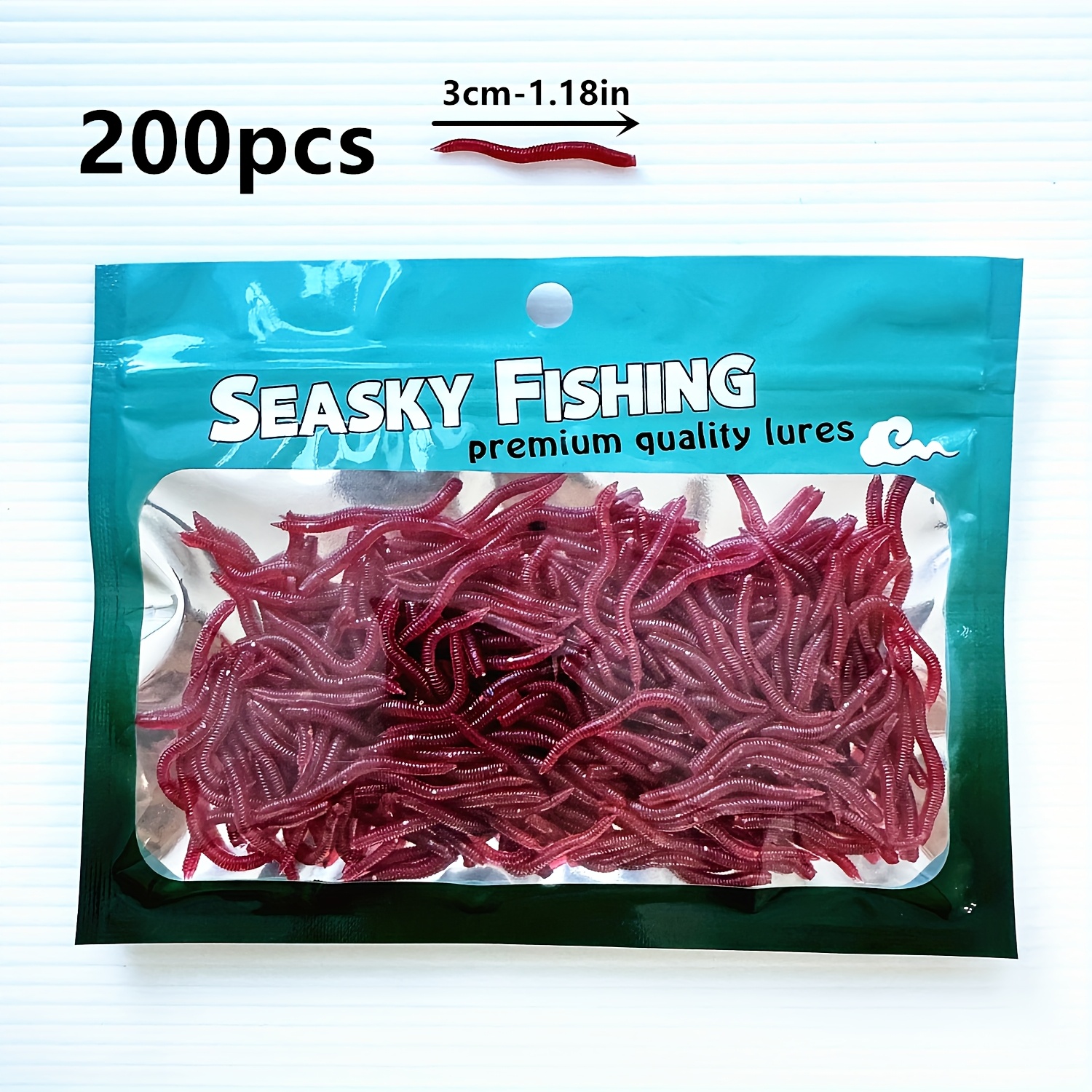 TEMU 200개 빨간 웜 소프트 베이트, 인조 겨울 낚시 루어, 생선 향 PVC 모조 미끼, 미세 웜 낚시 용품, 강과 호수에 적합, 검은 물고기, 배스, 물고기, Crucian carp, 잉어, 해산물
