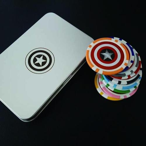 [기타]카지노 데칼칩 볼마커 9색상 별 실버틴케이스 세트