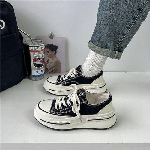 [에이치플러스몰]여성 캔버스 키높이 통굽 스니커즈 운동화 캐주얼 데