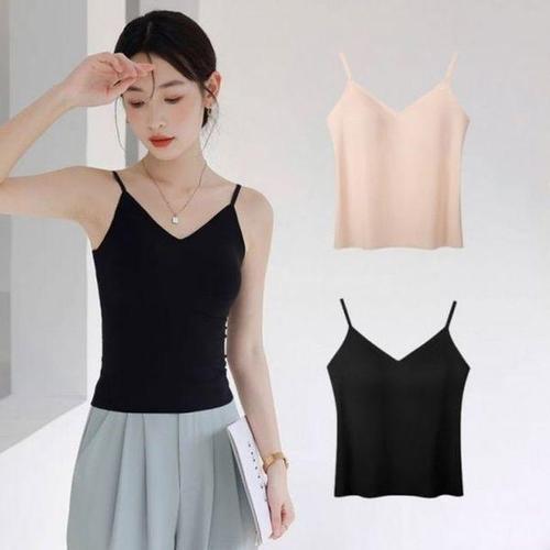 [에이치플러스몰]V넥 심리스 추천 캡내장 끈나시 꾸안꾸