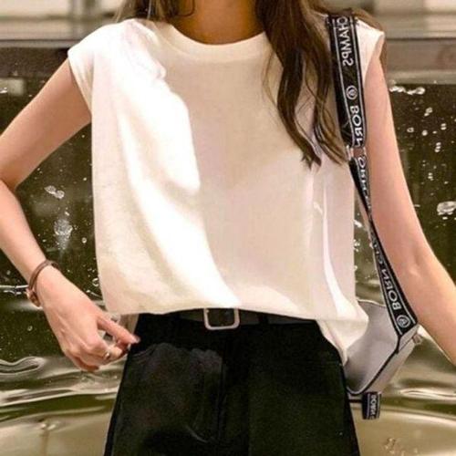 [에이치플러스몰]니트 인기 쿨 캡소매 나시티 감성