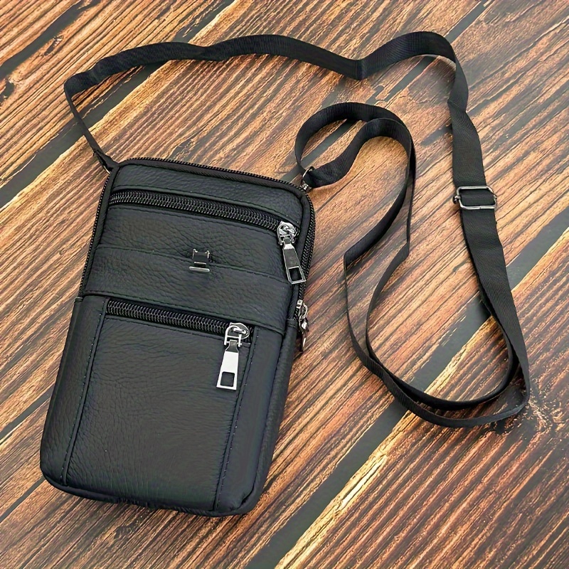 TEMU 폰 가방 상단층 소가죽 지퍼 허리 가방 남성용, 정품 가죽 수직 슬링 가방, 스포츠 통근 가방