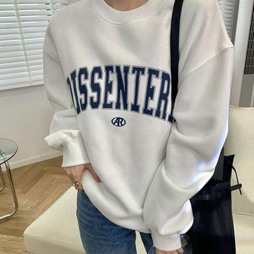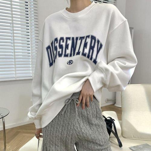 레터링 데일리 기모 오버핏 커플맨투맨 뽀얌 여자기모 WD7DE4A