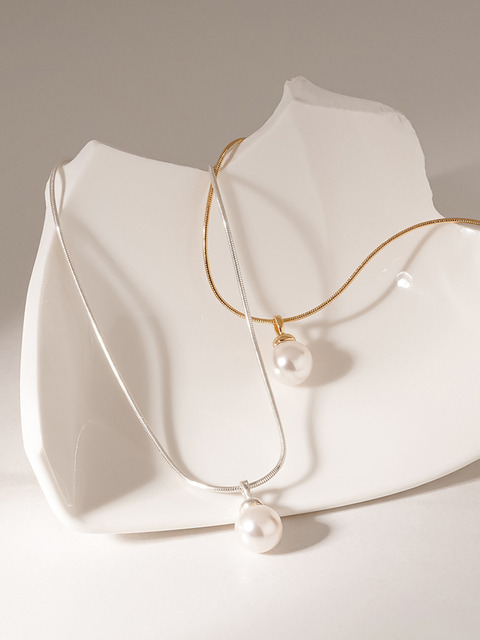 [베로에] [실버925] 소라 담수진주 목걸이 (3color)