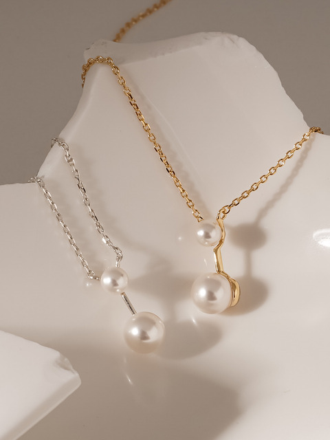 [쥬넬] Silver925 더블 진주 커브 팬던트 체인 목걸이(2 color)