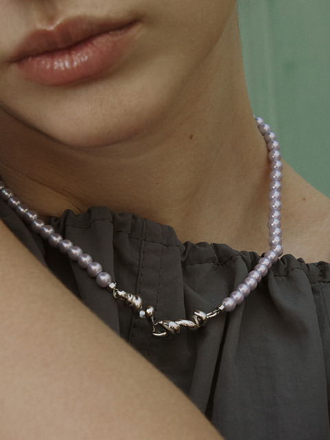 그레이 핑크 못난이 담수진주목걸이 925은 핸드메이드 모브톤 컬러 진주팔찌