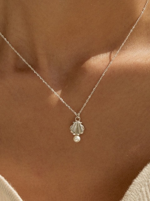 [베로에] [실버925] 클램 담수진주 목걸이 (3color)