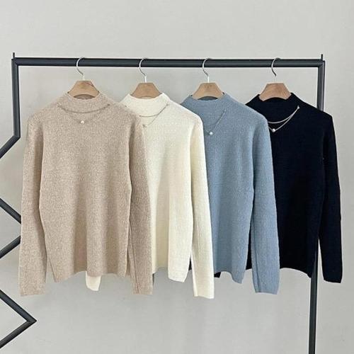 [옷자락]여자 반하이넥 진주목걸이 미니멀리즘 FW 3컬러 내의 니트