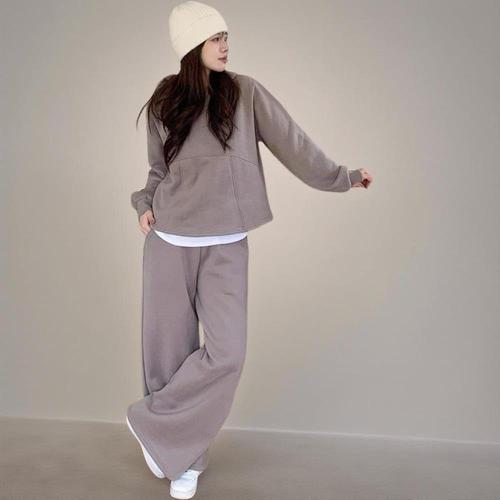 |KMD289B|여성용 후드티와 와이드 팬츠 기모 트레이닝 세트