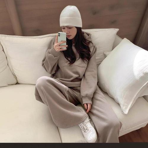 |KMD289B|여성용 기모 후드티와 와이드 팬츠 트레이닝 세트