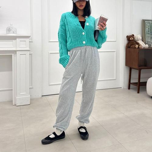 |CCP9491|여성용 따뜻한 스트링 롱 밴딩 트레이닝 팬츠