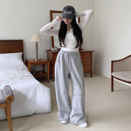 [신상오픈런]여성용 일상 트레이닝 와이드 팬츠 밴딩 스타일