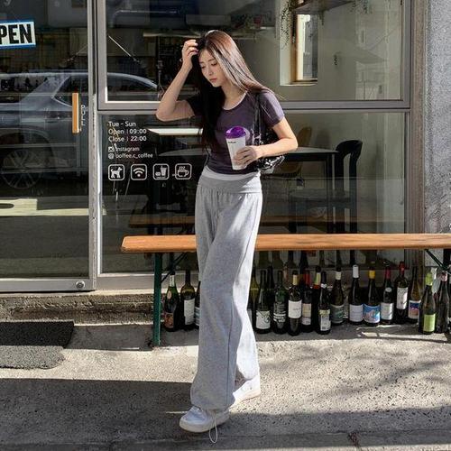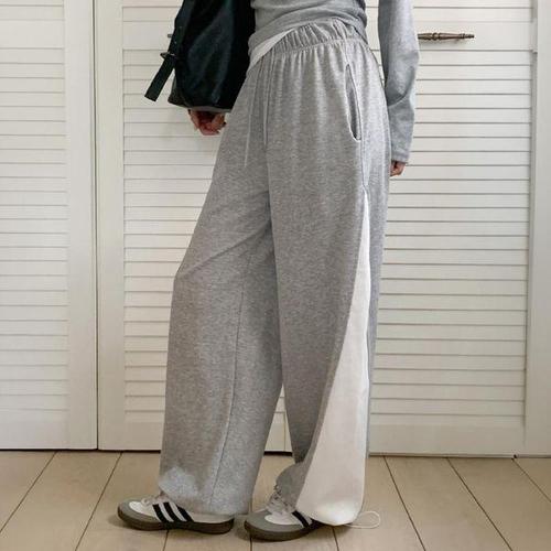 [신상오픈런]여성용 데일리 편안한 절개 배색 와이드 밴딩 루즈핏 트레이닝 바지