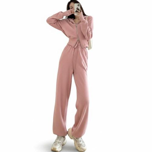 |CCD28CA|여성용 루즈핏 크롭 후드집업과 와이드 트레이닝 팬츠 세트