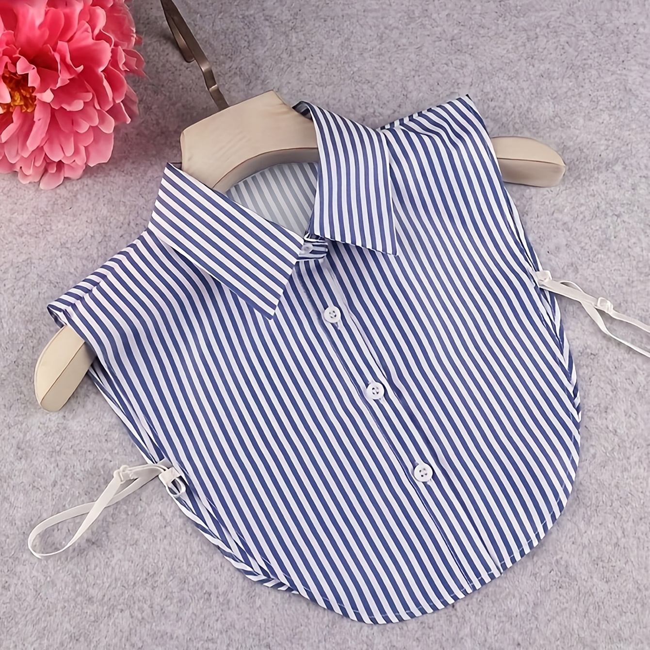 TEMU 1 여성용 탈착형 스탠드 칼라 - 블루 & 화이트 수직 , 폴리에스터 세미셔츠 인서트, 버튼 프론트 & 조절 가능한 타이, 레이어링 또는 단독 착용에 완벽, 패셔너블 레이어링 아이템 | 우아한 룩 | 고품질 제작