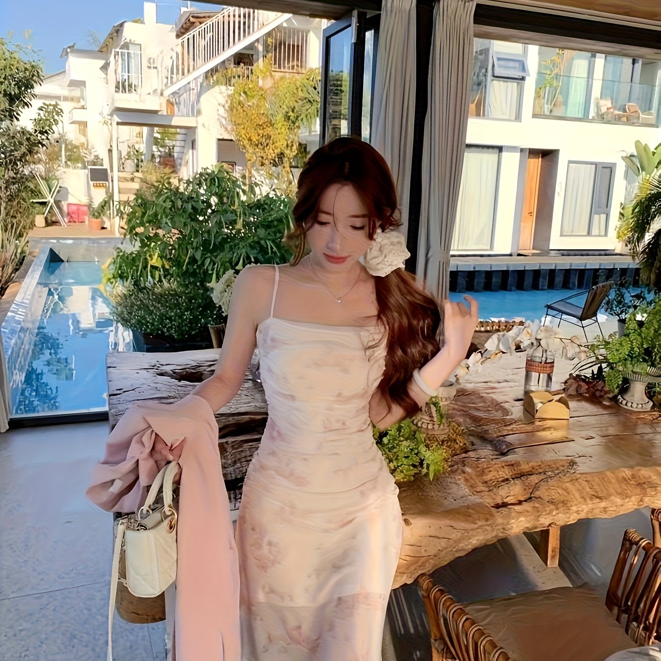 TEMU 슬릿 힙 스커트 플로럴 섹시 신상 여름 서스펜더 드레스 스커트 메쉬 슬림핏 슬림 여성 초기 핫 롱