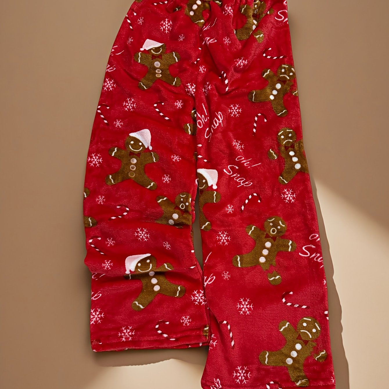 TEMU 크리스마스 캐릭터 레드 여성용 두꺼운 플리스 안감 따뜻한 캐주얼 홈 플란넬 파자마 긴 바지, 가을 겨울용 실내 편안한 착용, 포근한 파자마, 휴일 파자마, 축제 디자인, 플러시 소재, 편안한 핏, 수면복 하의, 휴일 선물, 여성 수면복