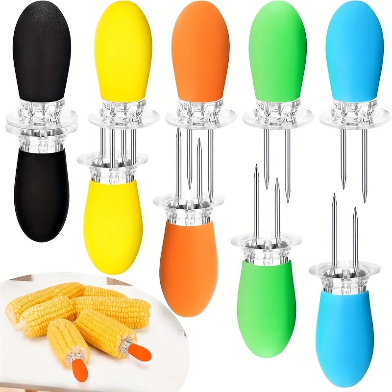 TEMU 4/10개 다용도 스테인리스 스틸 옥수수걸이, 꼬치, 치킨윙, 소시지, 바비큐 고기 포크, 옥수수 고정 가능, 정교한 인터락 디자인, 가정 요리, 모임, 캠핑 등 다양한 상황에 적합