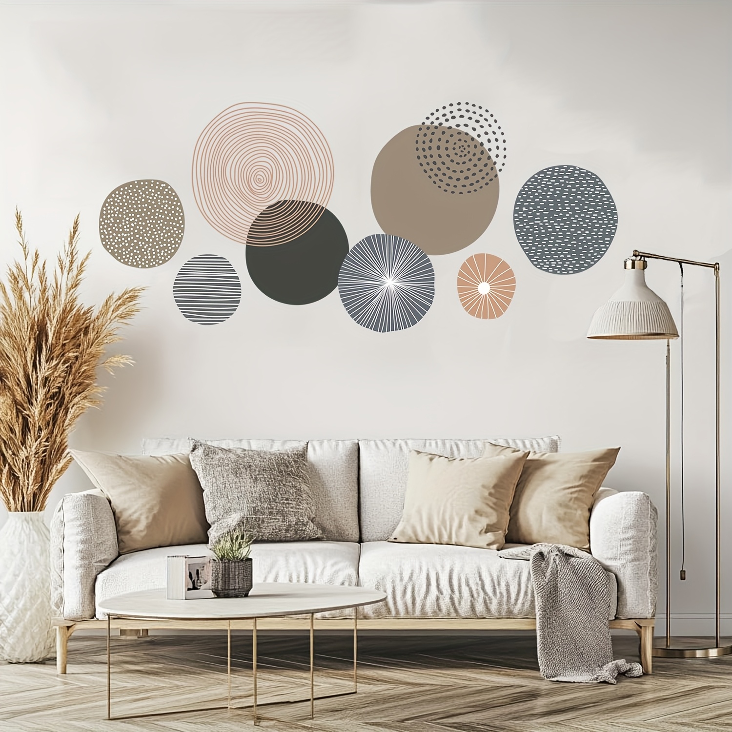 TEMU 스타일 추상 원형 벽 스티커, 침실 거실용 간단한 탈착식 원형 데코 벽 장식