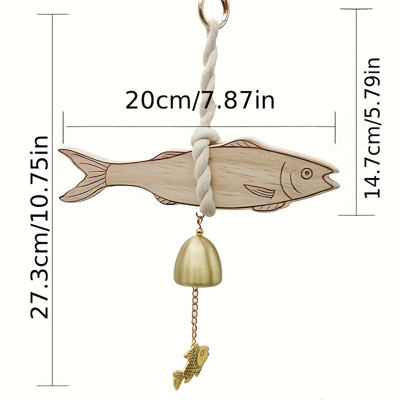 TEMU 수제 원목 물고기 모양 문풍경 - 금속 종 & 로프 포함, 나무 결 풍경 벨, 행운의 집들이 선물, 아시아 스타일 실내/외부 문 장식, 러스틱 팜하우스 입구 장식