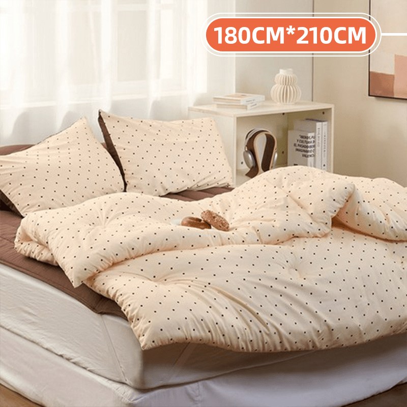 TEMU KURUA 부드러운 사계절 배색 도트 브라운 차렵이불 세트(180cm*210cm)