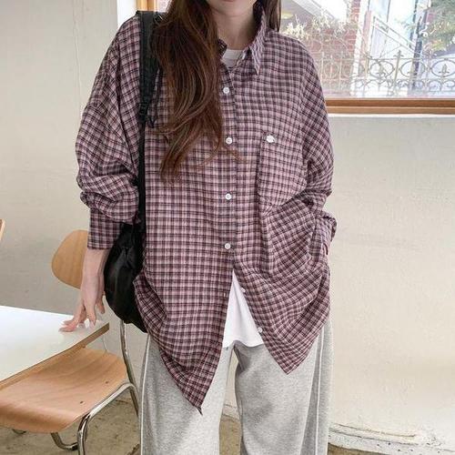 [셀러허브_여성트랜드패션]여자 박시핏 빅사이즈 격자 클래식 셔츠