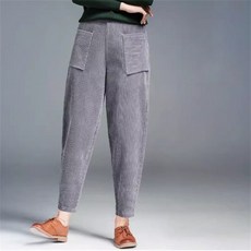 besteffie 여성 성인용 가을 겨울 고급 편안한 핏 넓은 주머니 기모 따뜻한 캐주얼 코듀로이 배기 바지 V15