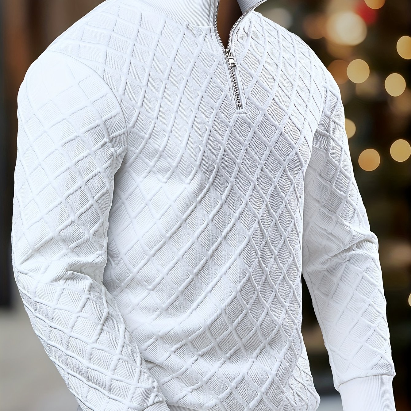 TEMU 남성 캐주얼 긴팔 지퍼업 스웨터 - 단색, 레귤러 핏, 라운드넥, 기하학적 패턴, 가을 & 겨울에 적합, 캐주얼 웨어, 남성용 스웨터, 니트, 남성용 스웨터 조끼, 남성용 니트, 남성용 니트 고품질