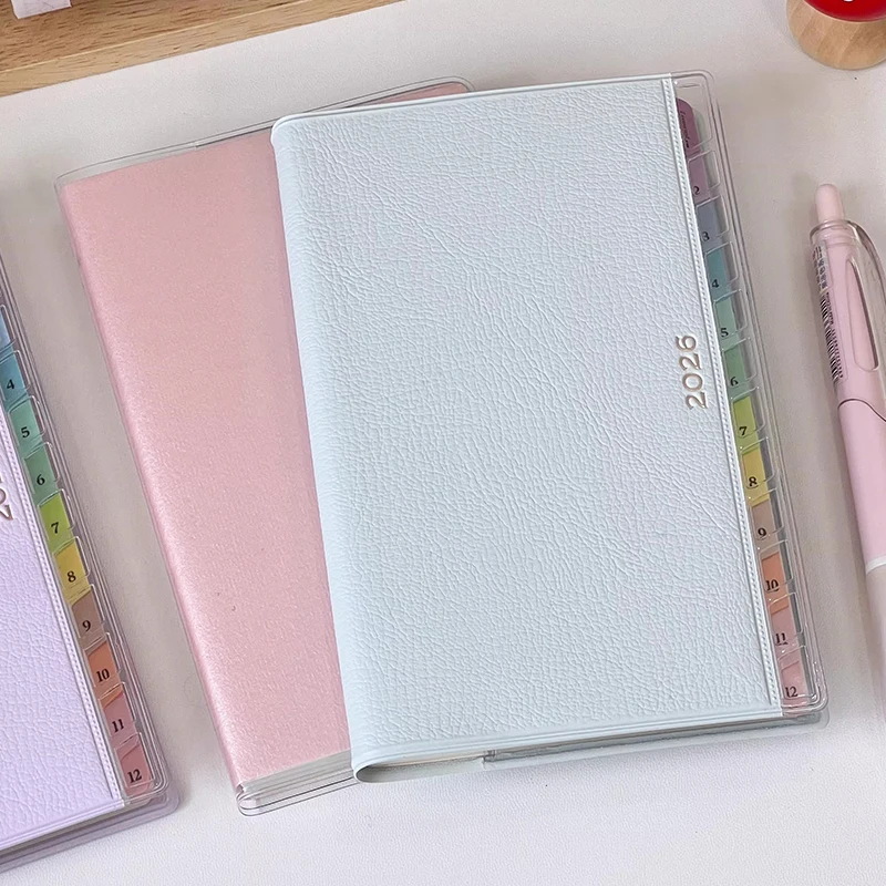 2026 휴대용 플래너 메모 가죽 노트북 캘린더 아젠다 북 컬러풀 인덱스 월간 주간 계획 노트 학생용