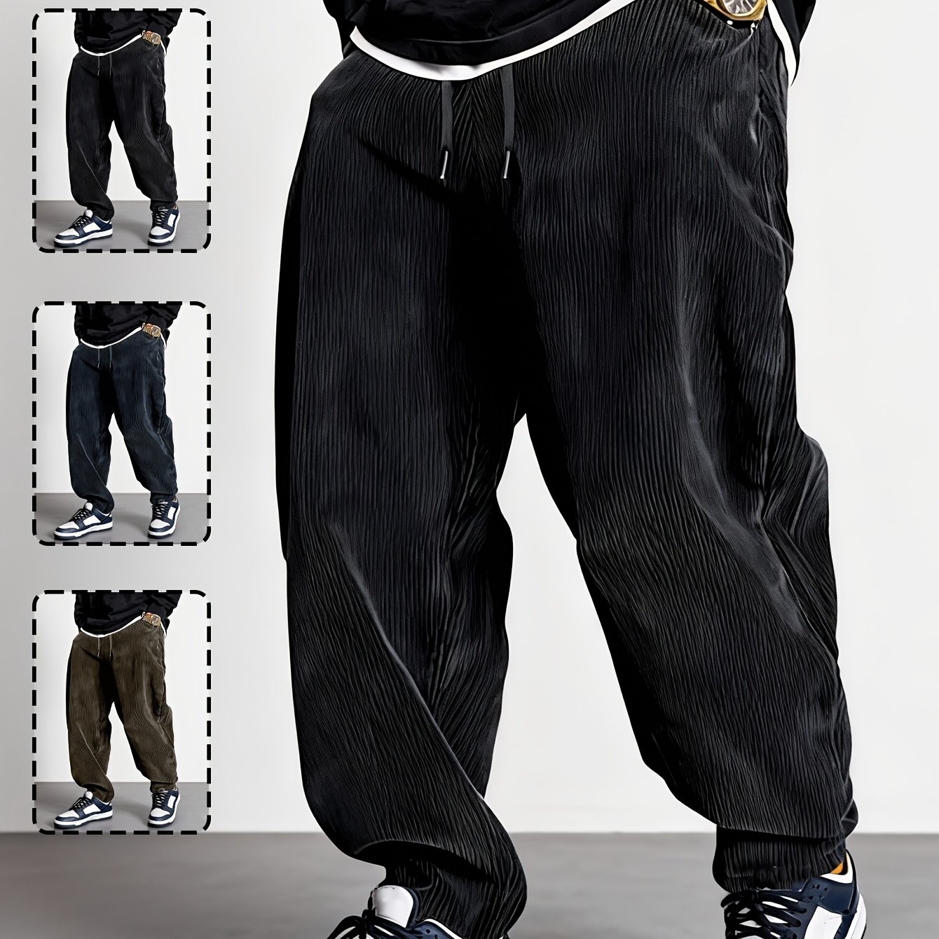 TEMU 남성용 신상 사계절 코듀로이 팬츠 1개, 루즈핏 스트레이트핏 레트로 캐주얼 바지, 부드럽고 편안한 원단, 블랙/그레이블루/브라운 다양한 색상 옵션