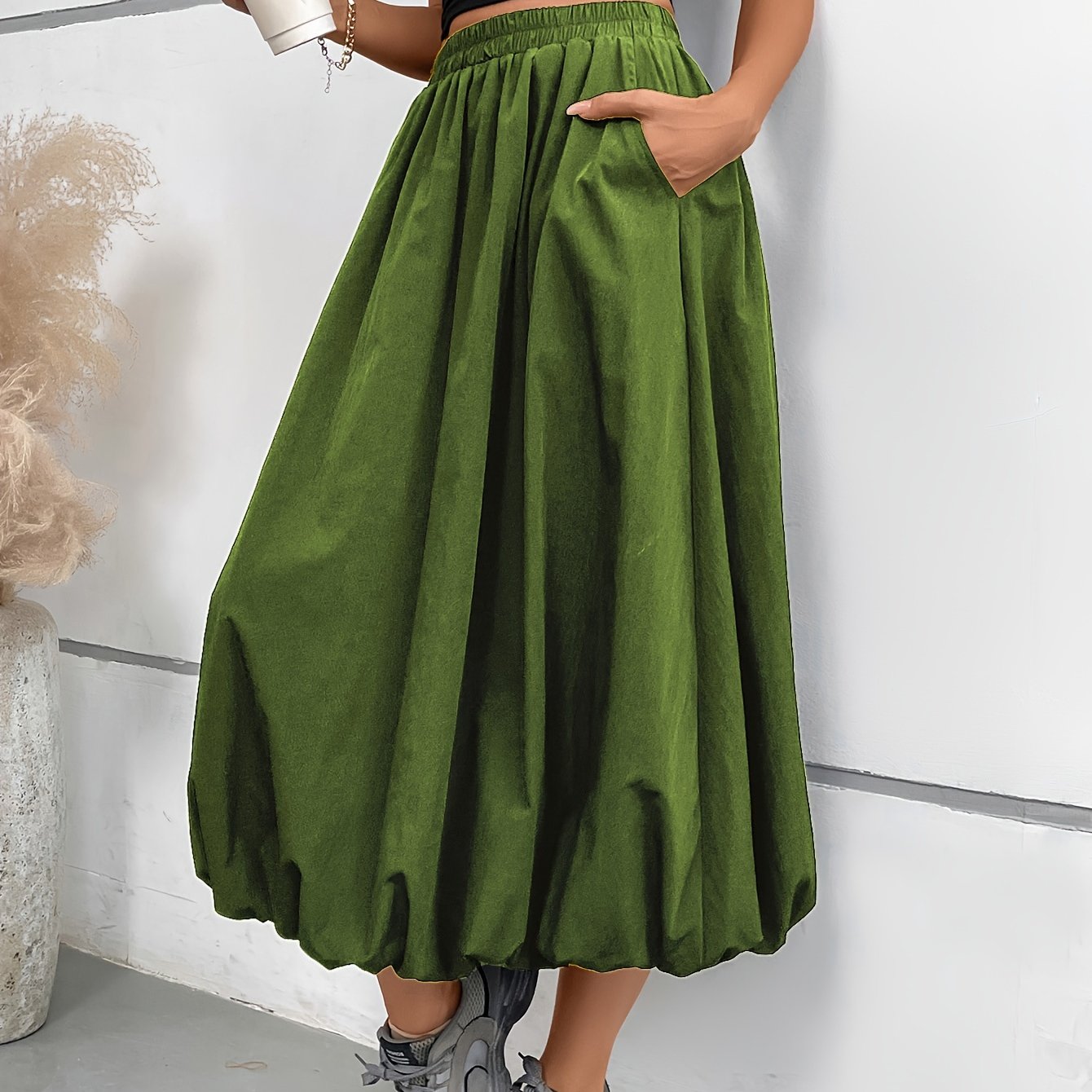 TEMU 여성용 하이웨이스트 A라인 스커트 - 매력적인 핏, 신축성 허리밴드, 가볍고 통기성 좋은 봄/여름 캐주얼 & 드레스룩 - 일상 및 정장용, 소녀 친화적 스커트, 러플 밑단, 편안한 착용감, 스프링 워드로브, 세련된 디자인, 부드러운 원단, 패션 애호가를 위한 여름 패션