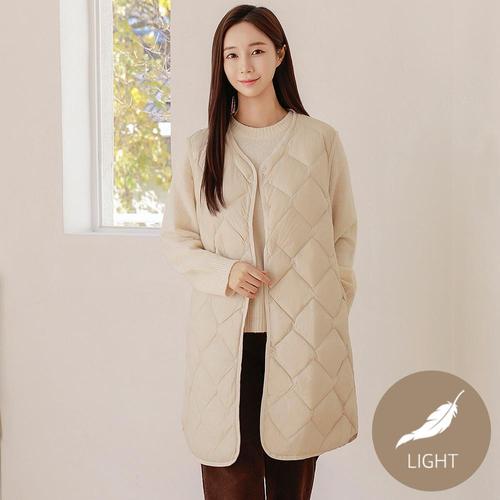 [다잇템][다잇템] 여성 누빔 카라없는 일상용 경량 패딩 롱 조끼_23516640_588872