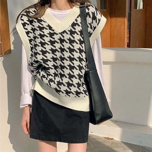 [셀럽하우스]테리셋업 BQGW4202 하운드체크 린넨니트 반티