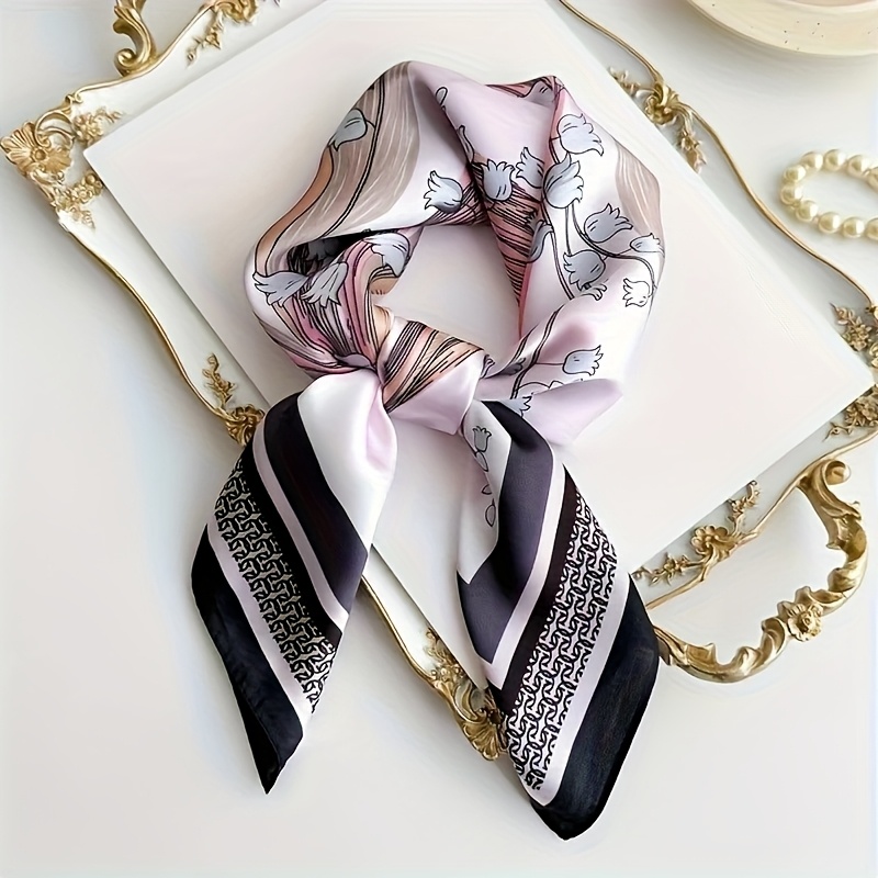 TEMU 소프트 사틴으로 만든 우아한 70 꽃 패션 스카프, 가벼우며 휴대하기 편리하며, 헤드밴드, 헤드 스카프, 목 다양하게 사용할 수 있습니다. 일상적인 활동, 해변 파티, 태양 보호, 그리고 기계 세척 가능합니다.|머리띠